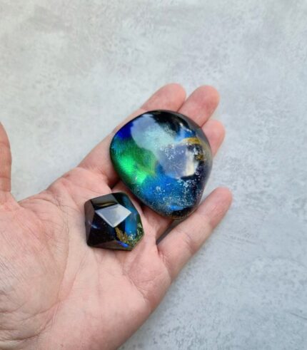 Ručno oslikane naušnice od epoxy smole. Metalni dijelovi su od kirurškog čelika.
