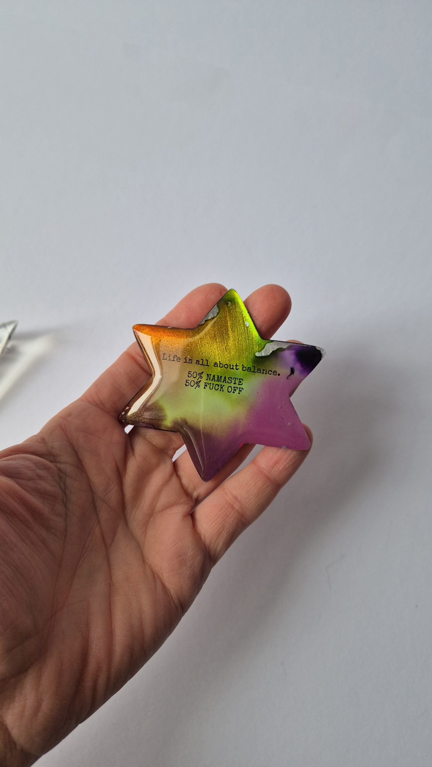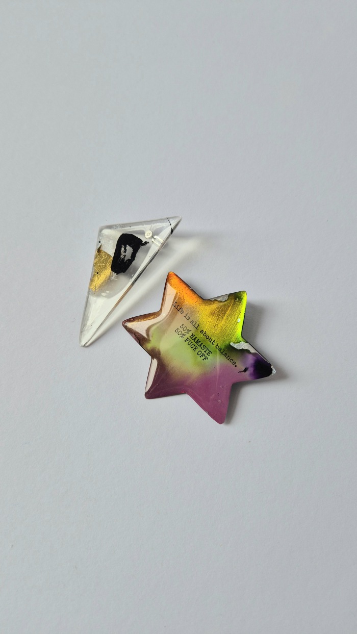 Ručno oslikane naušnice od epoxy smole, izrađene bez korištenja kalupa.
